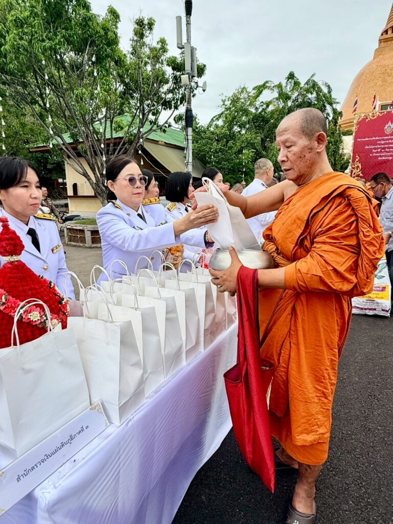 วันเสาร์ที่ 20 กันยายน 2568 ข้าราชการสำนักตรวจเงินแผ่นดินจังหวัดในเขตพื้นที่รับผิดชอบ เข้าร่วมพิธีเจริญพระพุทธมนต์และทำบุญตักบาตรถวายพระราชกุศล และพิธีวางพุ่มดอกไม้ถวายราชสักการะ พระบาทสมเด็จพระปรเมนทรมหาอานันทมหิดล พระอัฐมรามาธิบดินทร เนื่องในโอกาสวันพระบรมราชสมภพครบ 100 ปี 20 กันยายน 2568