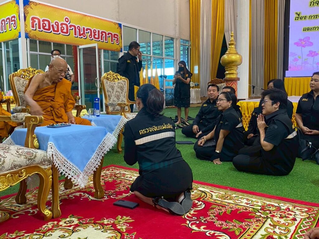 วันศุกร์ที่ 14 พฤศจิกายน 2568 สำนักตรวจเงินแผ่นดินจังหวัดสมุทรสาคร ร่วมกับสำนักงานพระพุทธศาสนาจังหวัดสมุทรสาคร จัดกิจกรรม “ถวายความรู้แด่พระสงฆ์และไวยาวัจกร เรื่องการจัดทำบัญชี รายรับ – รายจ่ายของวัด การจัดการเงินบริจาคของวัด และการเปิดบัญชี การเปลี่ยนแปลงแก้ไขบัญชีเงินฝากธนาคารของวัด” เพื่อถวายความรู้ให้กับเจ้าอาวาส รองเจ้าอาวาส ผู้ช่วยเจ้าอาวาส และไวยาวัจกร ในจังหวัดสมุทรสาคร เกี่ยวกับการจัดทำบัญชีให้เป็นไปตามระเบียบและกฎหมายที่เกี่ยวข้อง สามารถดำเนินการด้านการเงินและการบริหารจัดการทรัพย์สินของวัดได้อย่างถูกต้อง โปร่งใส และสอดคล้องกับหลักธรรมาภิบาล ณ วัดหลักสี่ราษฎร์สโมสร อำเภอบ้านแพ้ว จังหวัดสมุทรสาคร