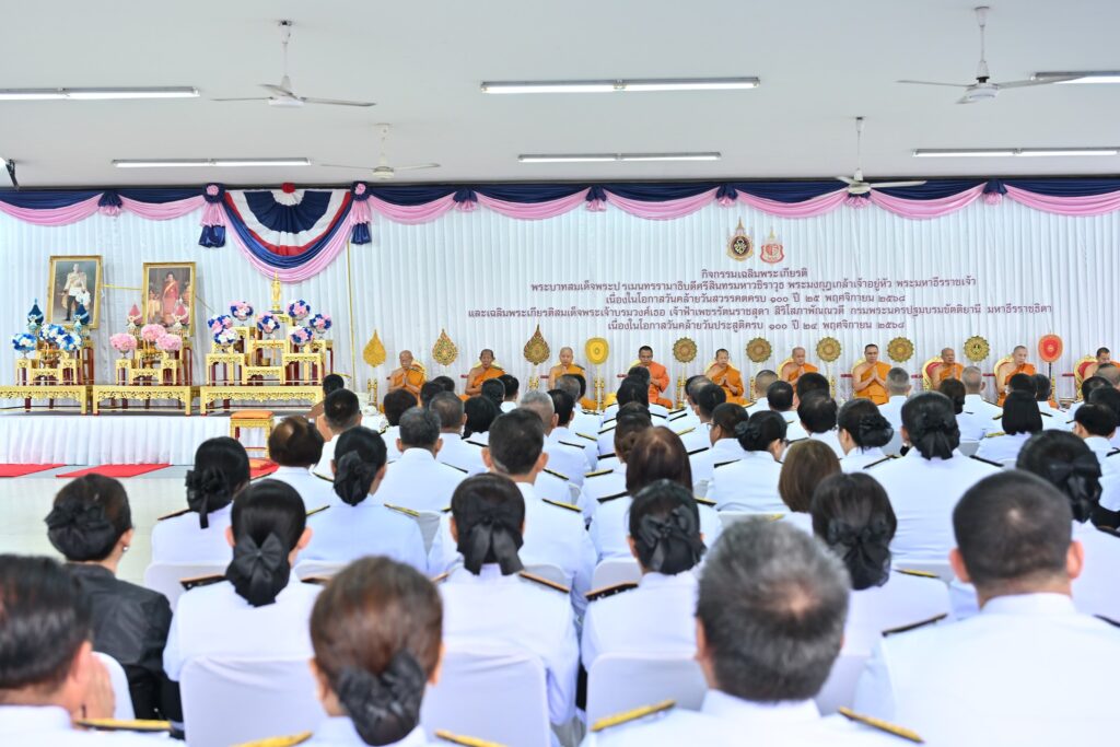 วันอังคารที่ 25 พฤศจิกายน 2568 นายพยุธ นิรันรัตน์ รองผู้ตรวจเงินแผ่นดิน (สตภ.3) พร้อมด้วยข้าราชการสำนักงานการตรวจเงินแผ่นดินภูมิภาคที่ 3 (จังหวัดนครปฐม) เข้าร่วมพิธีเจริญพระพุทธมนต์และทำบุญตักบาตรถวายพระราชกุศล พิธีวางพวงมาลาถวายราชสักการะพระบาทสมเด็จพระปรเมนทรรามาธิบดีศรีสินทรมหาวชิราวุธ พระมงกุฎเกล้าเจ้าอยู่หัว พระมหาธีรราชเจ้า และวางพุ่มดอกไม้ถวายสักการะสมเด็จพระเจ้าบรมวงศ์เธอ เจ้าฟ้าเพชรรัตนราชสุดา สิริโสภาพัณณวดี กรมพระนครปฐมบรมขัตติยานี มหาธีรราชธิดา และพิธีสวดพระพุทธมนต์และเจริญจิตภาวนา ถวายพระราชกุศลแด่ พระบาทสมเด็จพระปรเมนทรรามาธิบดีศรีสินทรมหาวชิราวุธ พระมงกุฎเกล้าเจ้าอยู่หัว พระมหาธีรราชเจ้า เนื่องในวันคล้ายวันสวรรคตครบ 100 ปี 25 พฤศจิกายน 2568 และสมเด็จพระเจ้าบรมวงศ์เธอ เจ้าฟ้าเพชรรัตนราชสุดา สิริโสภาพัณณวดี กรมพระนครปฐมบรมขัตติยานี มหาธีรราชธิดา เนื่องในวันประสูติครบ 100 ปี 24 พฤศจิกายน 2568 โดยมี นางสาวอโรชา นันทมนตรี ผู้ว่าราชการจังหวัดนครปฐม เป็นประธานพิธี ณ วัดพระปฐมเจดีย์ จังหวัดนครปฐม