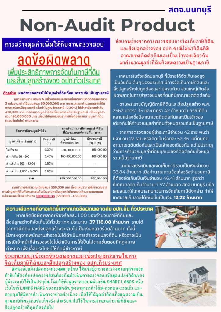 สตจ.นนทบุรี เผยแพร่ผลงาน การสร้างมูลค่าเพิ่มให้งานตรวจสอบ “Non-Audit Product” การลดข้อผิดพลาด เพิ่มประสิทธิภาพการจัดเก็บภาษีที่ดินและสิ่งปลูกสร้างของ อปท. ทั่วประเทศข่าวที่น่าสนใจ, ข่าวประชาสัมพันธ์กุมภาพันธ์ 21, 2026กุมภาพันธ์ 21, 2026 Post Views: 12
