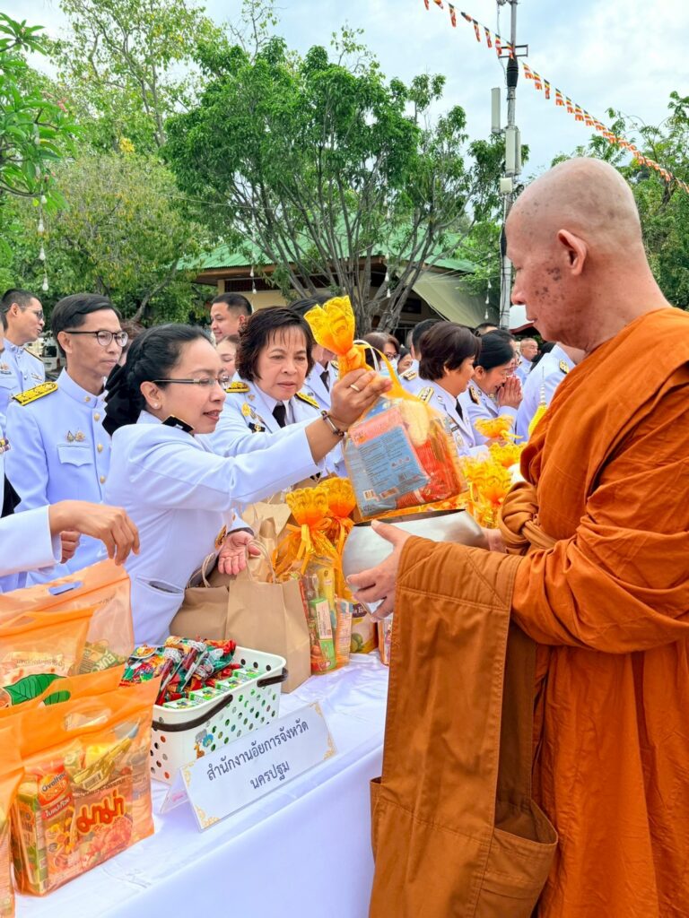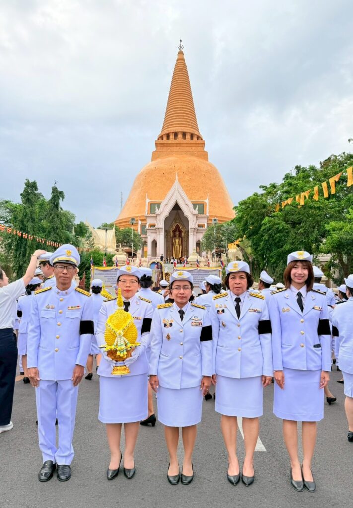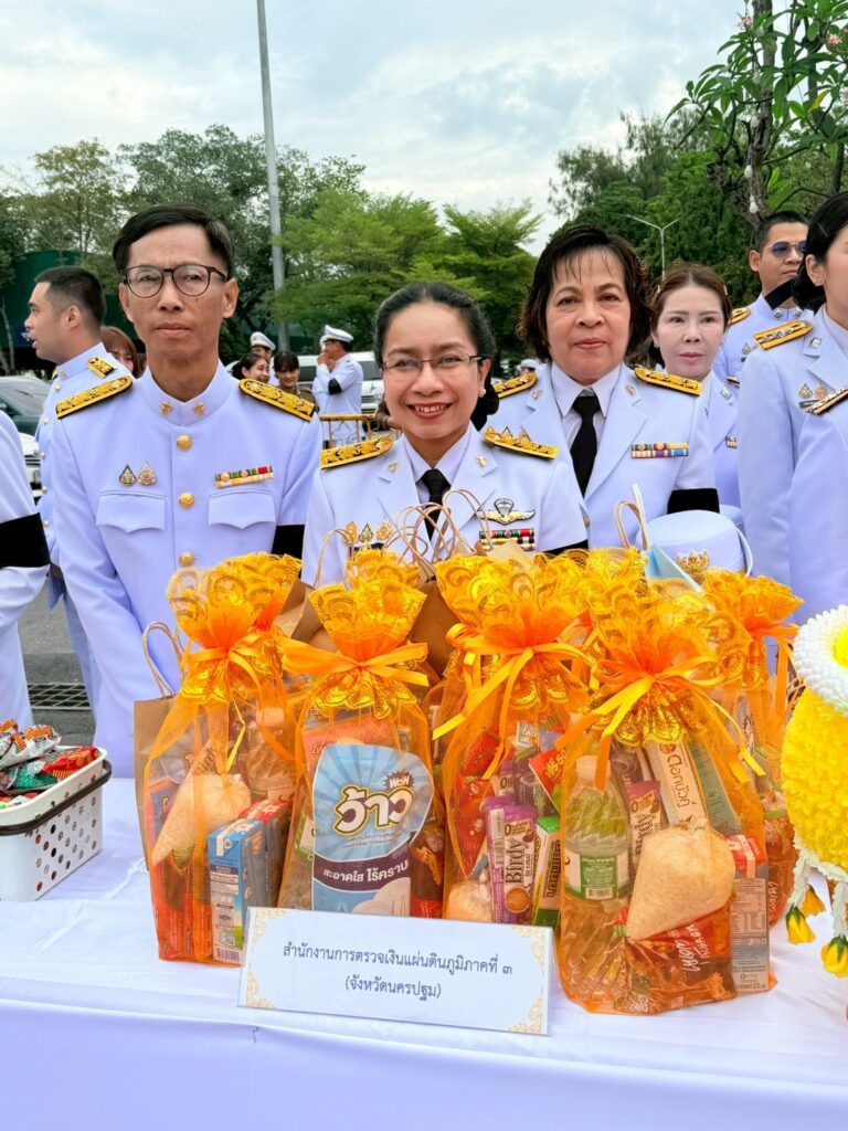 วันศุกร์ที่ 5 ธันวาคม 2568 นางสาวนันทิดา บัวแย้ม ผู้ตรวจเงินแผ่นดิน (สตภ.3) พร้อมด้วยข้าราชการสำนักตรวจเงินแผ่นดินจังหวัดนครปฐม เข้าร่วมพิธีเจริญพระพุทธมนต์ และทำบุญตักบาตรถวายพระราชกุศล พิธีวางพุ่มดอกไม้ถวายบังคม เบื้องหน้าพระบรมฉายาลักษณ์ พระบาทสมเด็จพระบรมชนกาธิเบศร มหาภูมิพลอดุลยเดชมหาราช บรมนาถบพิตร เนื่องในวันคล้ายวันพระบรมราชสมภพ วันชาติ และวันพ่อแห่งชาติ 5 ธันวาคม 2568 เพื่อแสดงความจงรักภักดีและน้อมรำลึกในพระมหากรุณาธิคุณ ที่ทรงมีต่อปวงชนชาวไทยเป็นล้นพ้นอย่างหาที่สุดมิได้ โดยมี นางสาวอโรชา นันทมนตรี ผู้ว่าราชการจังหวัดนครปฐม เป็นประธานพิธี ณ องค์พระปฐมเจดีย์ อำเภอเมืองนครปฐม จังหวัดนครปฐม