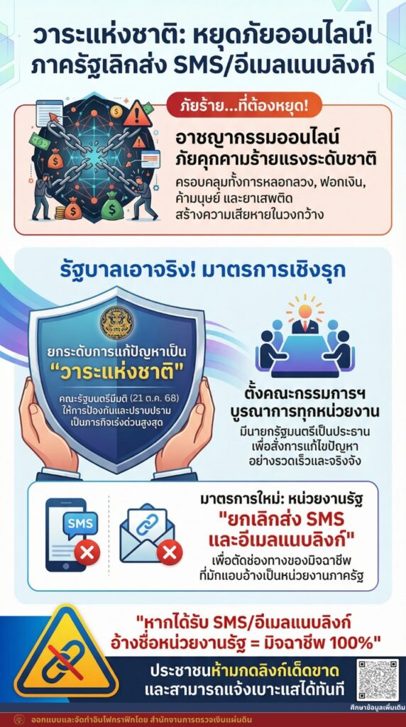 วาระแห่งชาติ: หยุดภัยออนไลน์! ภาครัฐเลิกส่ง SMS/อีเมลแนบลิงก์กิจกรรมประชาสัมพันธ์, อินโฟกราฟิกธันวาคม 26, 2025ธันวาคม 26, 2025 Post Views: 57