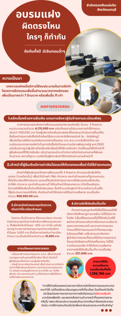 สตจ.นนทบุรี ตรวจสอบโครงการฝึกอบรมของ อปท. พบการใช้จ่ายเงินงบประมาณไม่เป็นไปตามกฎหมายข่าวที่น่าสนใจ, ข่าวประชาสัมพันธ์กุมภาพันธ์ 21, 2026กุมภาพันธ์ 21, 2026 Post Views: 14