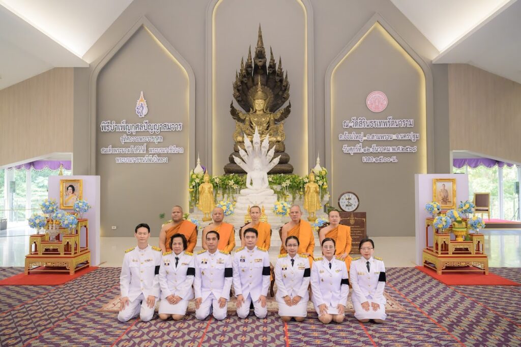 วันศุกร์ที่ 12 ธันวาคม 2568 เวลา 15.00 น. นางสาวนันทิดา บัวแย้ม ผู้ตรวจเงินแผ่นดิน (สตภ.3) นายพยุธ นิรันรัตน์ รองผู้ตรวจเงินแผ่นดิน (สตภ.3) พร้อมด้วยข้าราชการสำนักงานการตรวจเงินแผ่นดินภูมิภาคที่ 3 (จังหวัดนครปฐม) และสำนักตรวจเงินแผ่นดินจังหวัดนครปฐม เข้าร่วมพิธีบำเพ็ญกุศลปัญญาสมวาร 50 วัน เพื่ออุทิศถวายเป็นพระราชกุศลแด่ สมเด็จพระนางเจ้าสิริกิติ์ พระบรมราชินีนาถ พระบรมราชชนนีพันปีหลวง ณ อาคารปฏิบัติธรรมเอสบี วัดสิรินธรเทพรัตนาราม ตำบลอ้อมใหญ่ อำเภอสามพราน จังหวัดนครปฐม