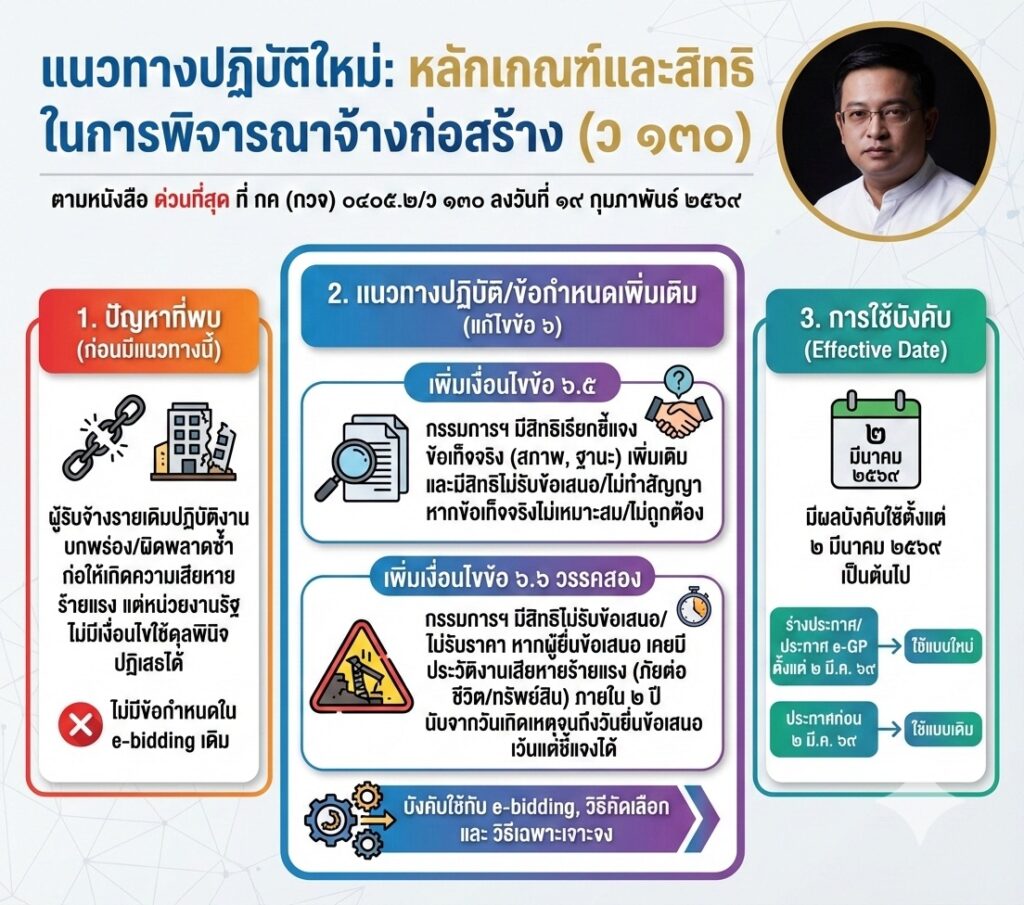 แนวทางปฏิบัติตามหลักเกณฑ์และสิทธิในการพิจารณาจ้างก่อสร้าง (ว 130)ข่าวที่น่าสนใจ, ข่าวประชาสัมพันธ์กุมภาพันธ์ 21, 2026 Post Views: 14